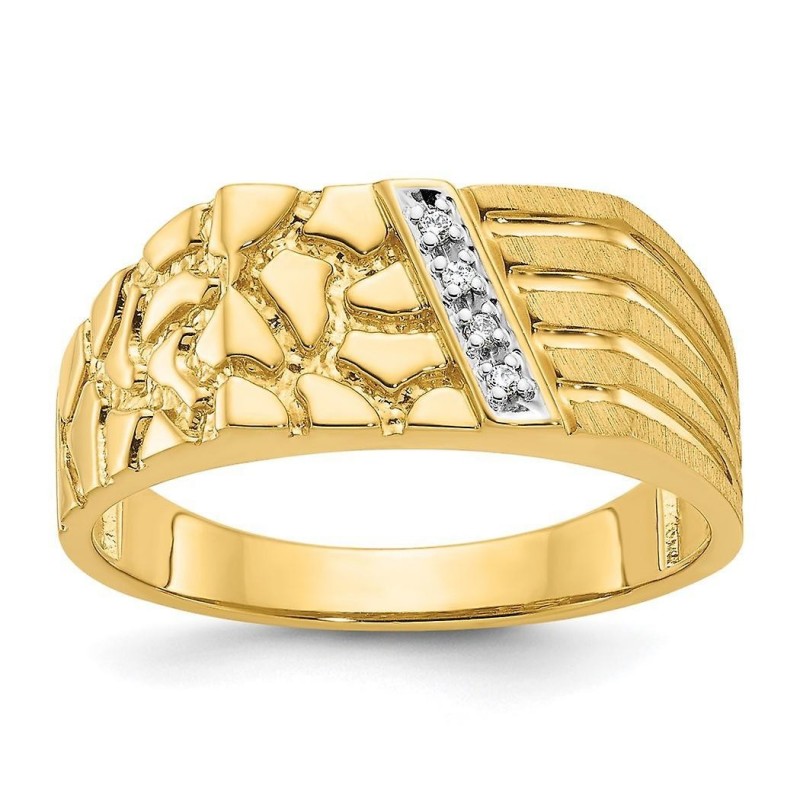 Anello da uomo con pepita di diamanti lucidati 10k - Misura 10,00 - 4,6 grammi, peso del diamante 0,03 carati in oro giallo 10k - - Scatola portagioielli pronta per il regalo inclusa - Finitura: lucida - ::: ::: [Cura e gestione: diamante] - Pulire con acqua calda e sapone e una spazzola morbida o un panno. :::