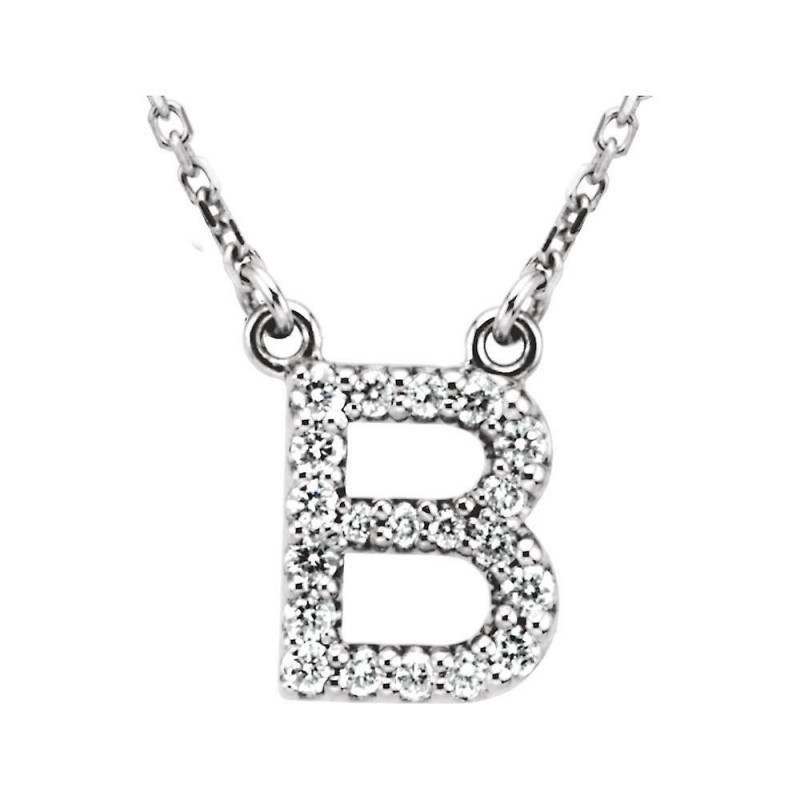 Collana in oro bianco 14k con diamante B lucido da 0,17 dwt, gioiello da regalo da donna