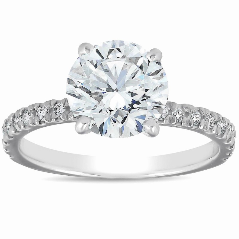 Anello di fidanzamento solitario con diamante francese bianco pavé da 2 1/3 ct in oro bianco 14k