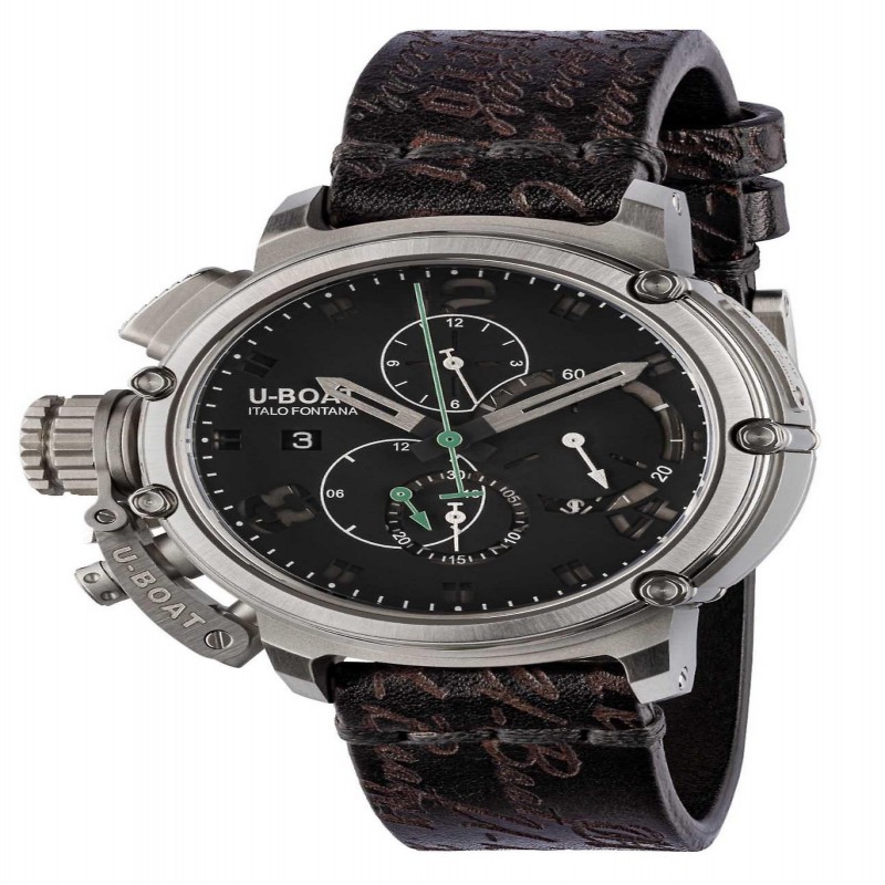 Orologio da uomo U-Boot. Cassa in acciaio inossidabile argentato. Quadrante nero. Movimento automatico. Impermeabile fino a 10 metri. 8528.